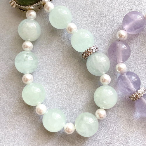【一点物】ラリマー ハート&鹿角うさぎ・フローライトねこちゃん天然石ブレスレット フローライト ミニねこ【ca6-10】彫刻置物 天然石 天然石 Luna